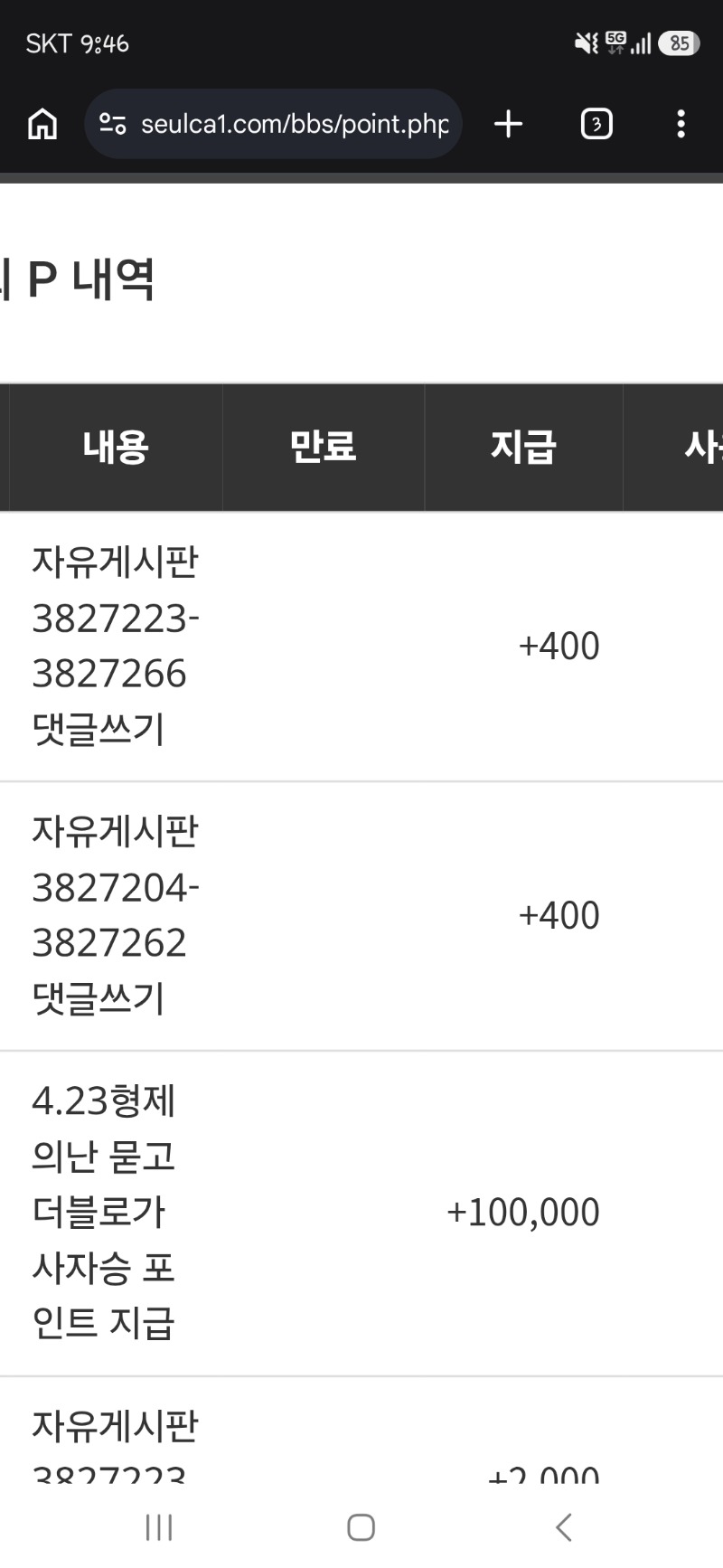 형난 사자승 포인트~ 파이리 2 1 0 21:47:24 *기프티콘 바코드 노출 주의* <- 사자축하하고 달이도 고생했어!! 1 0 https://seulca1.com/bbs/board.php?bo_table=free&wr_id=3827276 Author 3 1 Lv.13 파이리 13 20,612,456 (52%) 파이리님 보유 포인트 : P 0 +2 04.23 형난 사자승 포인트~ +3 04.23 형난 대결에서 사자 롤링맥스!! +4 04.23 비벼가 추겜성공했던거 부족했다고.. ssg.. +4 04.23 비제쿱 바꾸고싶은데..포인트가없... +6 04.23 이번주 쌍복이..왜케많이오노 ㅋㅋㅋ