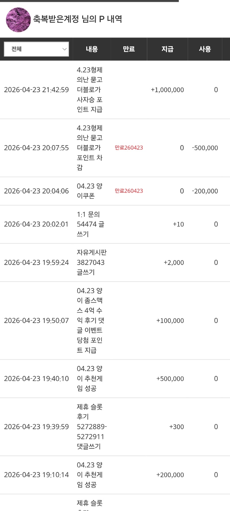 사자나이스!! 축복받은계정 1 0 0 21:51:15 *기프티콘 바코드 노출 주의* <- 친구 사자 오늘 이겨줘서 고맙고 덕분에 50만포인트 땃다 담에또 이겨버리고 밥 잘챙겨먹고 고생했으 0 0 https://seulca1.com/bbs/board.php?bo_table=free&wr_id=3827288 Author 1 0 Lv.6 축복받은계정 6 1,535,248 (53%) 축복받은계정님 보유 포인트 : P 2,649,398 +2 04.23 여즘 버메가 어때요 나때는 이랬는데.. +4 04.23 오라메 261배 까비.. +1 04.23 사자나이스!! +2 04.23 양이형님 추겜 맥스 후기!! 04.23 커피감사요!!