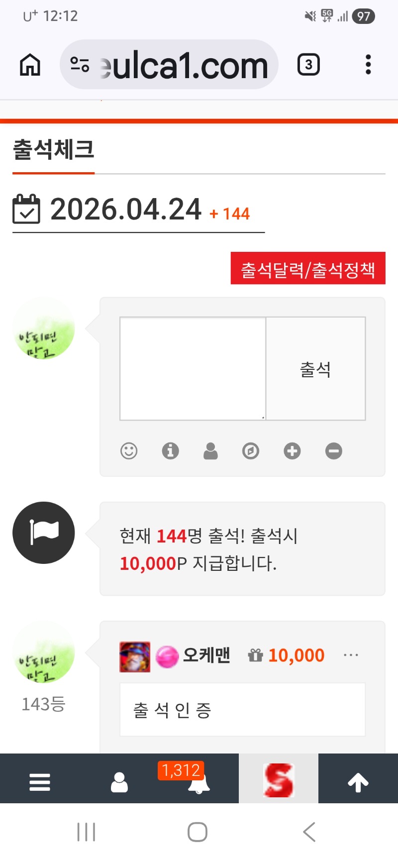 출석 입니다 오케맨 1 1 0 00:14:15 *기프티콘 바코드 노출 주의* <- 오늘도 건승 기원합니다 1 0 https://seulca1.com/bbs/board.php?bo_table=free&wr_id=3827657 Author 1 2 Lv.17 오케맨 17 74,729,962 (15%) 오케맨님 보유 포인트 : P 1,994,184 04.24 오늘 첫 일일복권 +1 04.24 출석 입니다 04.23 오늘도 수고하셨습니다 +2 04.23 형난 수고하셨습니다 04.23 형난 둘다 화이팅