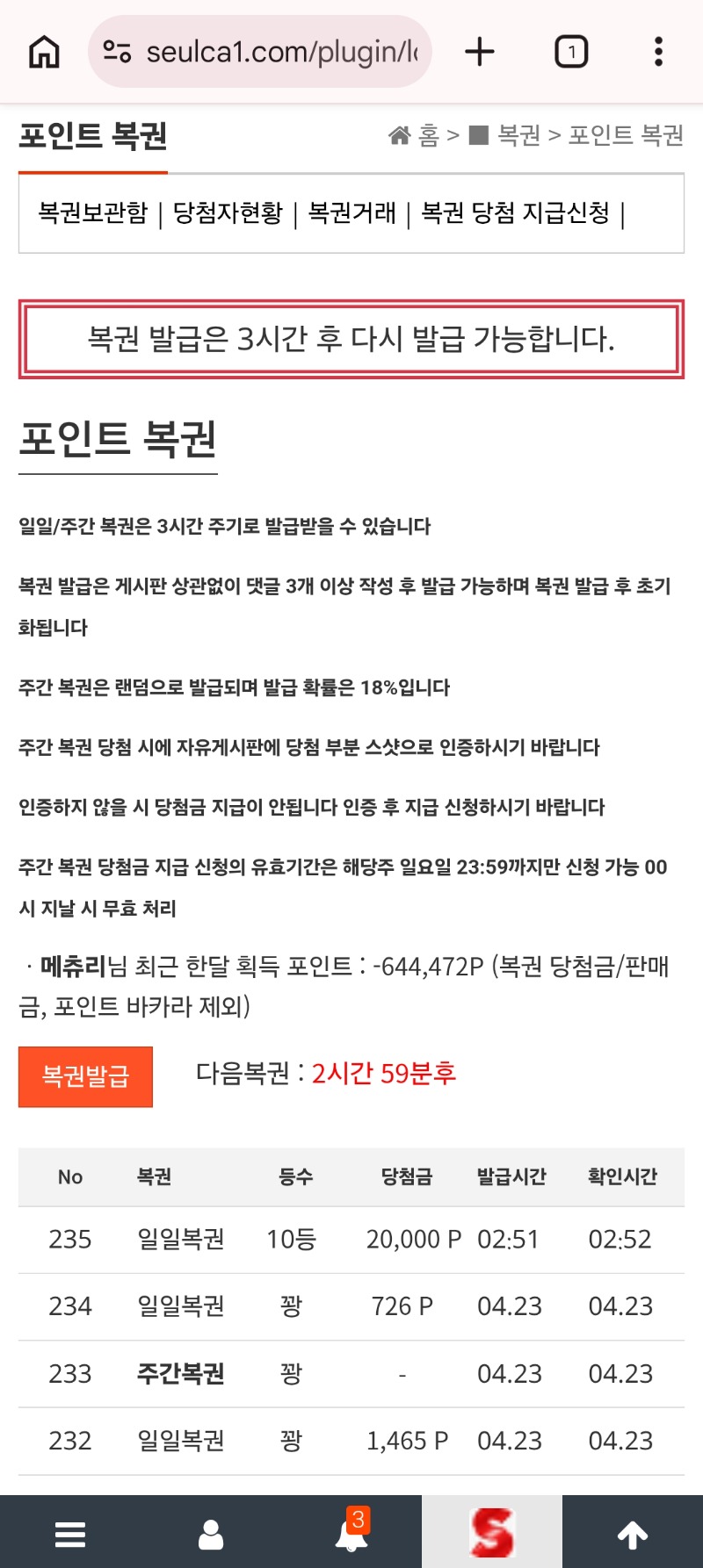일복 10등 감사해요^^ 메츄리 2 0 0 02:54:01 *기프티콘 바코드 노출 주의* <- 당첨 감사합니다~~ㅅㅅ 0 0 https://seulca1.com/bbs/board.php?bo_table=free&wr_id=3827865 Author 1 0 Lv.8 메츄리 8 3,253,338 (25%) 메츄리님 보유 포인트 : P 0 +2 04.24 일복 10등 감사해요^^ +2 04.24 출첵하고 포교신청했어여ㅋㅋㅋㅋ +1 04.24 [비밀글] 포교신청 +23 04.23 7대6패 와이ㄹㅏ노? 정신차리라ㅋㅋㅋ +23 04.23 5대4 패 ㅠ