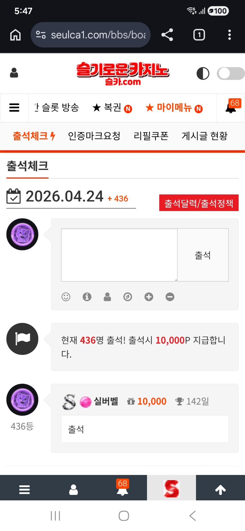 출석하고 ~~~ 실버벨 1 0 0 05:48:14 *기프티콘 바코드 노출 주의* <- 만근가야하 ~~~~^ 좋은하루되세요 ~~~~ 0 0 https://seulca1.com/bbs/board.php?bo_table=free&wr_id=3827988 Author 8 6 Lv.19 실버벨 19 178,015,848 (0%) 실버벨님 보유 포인트 : P 5,864,485 +13 04.24 토라메 133 +1 04.24 출석하고 ~~~ +8 04.24 3승~~~굿굿 ㅎㅎ +7 04.24 2승 좋고~~ +6 04.24 바카라 1승~~~~