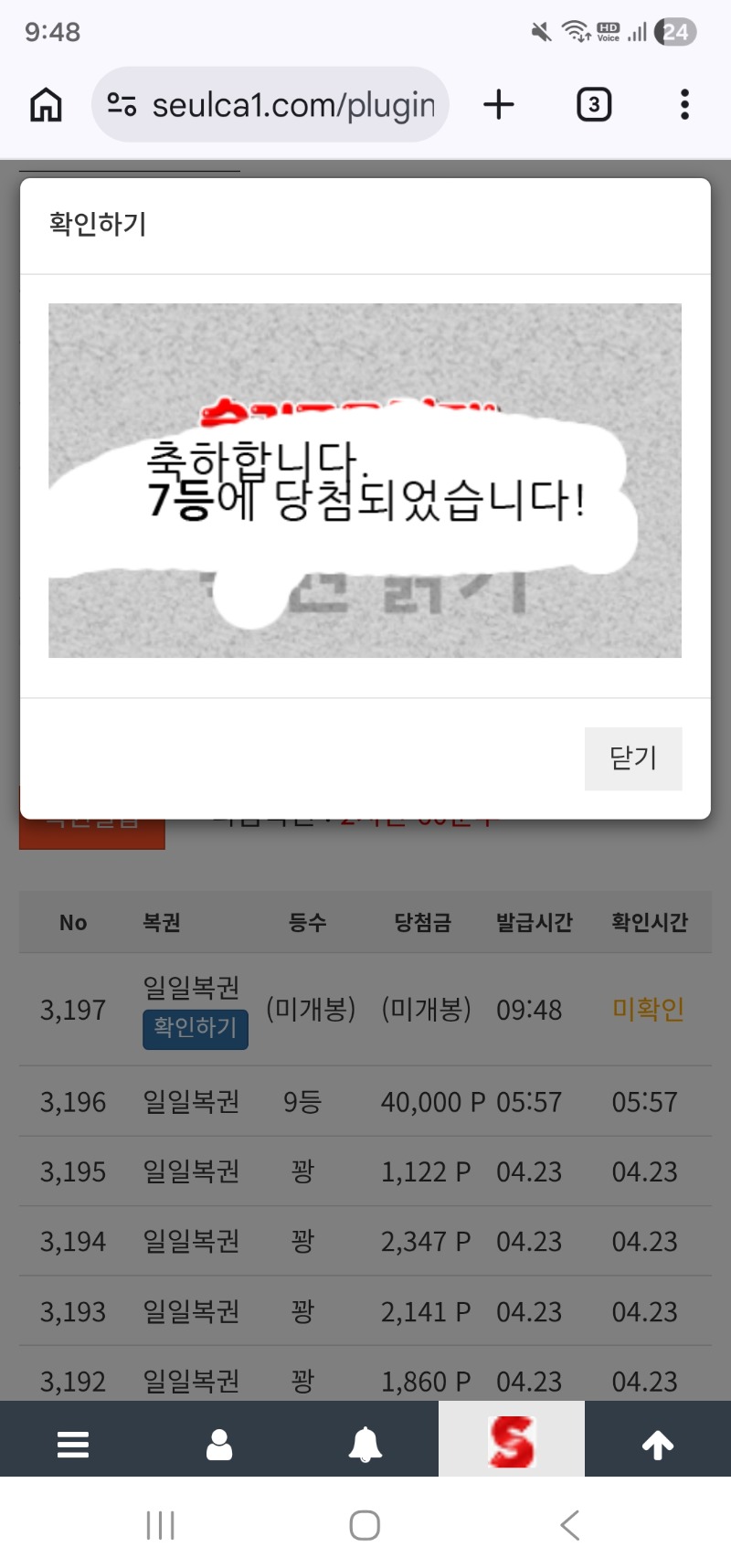 일복이 7등 당첨 ~ 지니 7 0 0 09:49:33 *기프티콘 바코드 노출 주의* <- 일복이 9등, 7등 연당첨~~ 0 0 https://seulca1.com/bbs/board.php?bo_table=free&wr_id=3828427 Author 5 2 Lv.16 지니 16 60,351,097 (51%) 지니님 보유 포인트 : P 776,217 +7 04.24 일복이 7등 당첨 ~ +1 04.24 출첵 ~ +2 04.23 모닝 일복 6등 당첨 +1 04.23 출첵 +1 04.22 쌍복이~~~