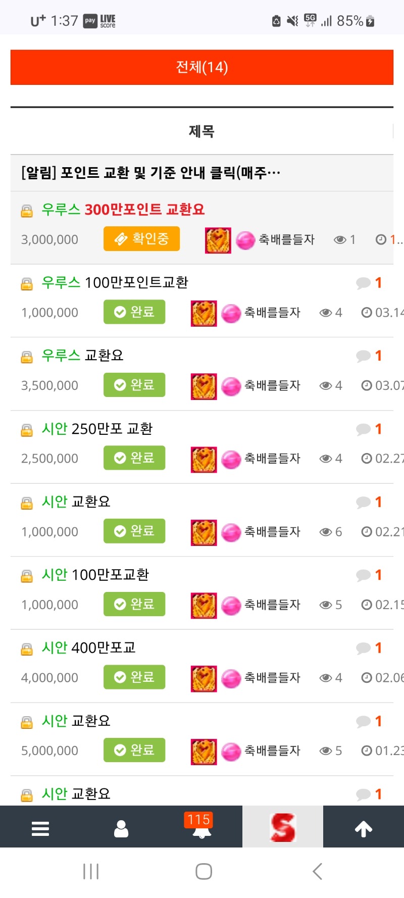 300만포교 성공 축배를들자 6 0 0 13:39:02 괜히 좀더 불리려다가 혼난적이 한두번이 아니라서 얼른 포교햇습니다 0 0 https://seulca1.com/bbs/board.php?bo_table=free&wr_id=3829130 Author 3 0 Lv.13 축배를들자 13 21,226,321 (64%) 축배를들자님 보유 포인트 : P 672,268 +2 04.24 이모리필요 +6 04.24 300만포교 성공 +1 04.24 [비밀글] 300만포인트 교환요 +3 04.24 일복10등 04.24 맛점하세요