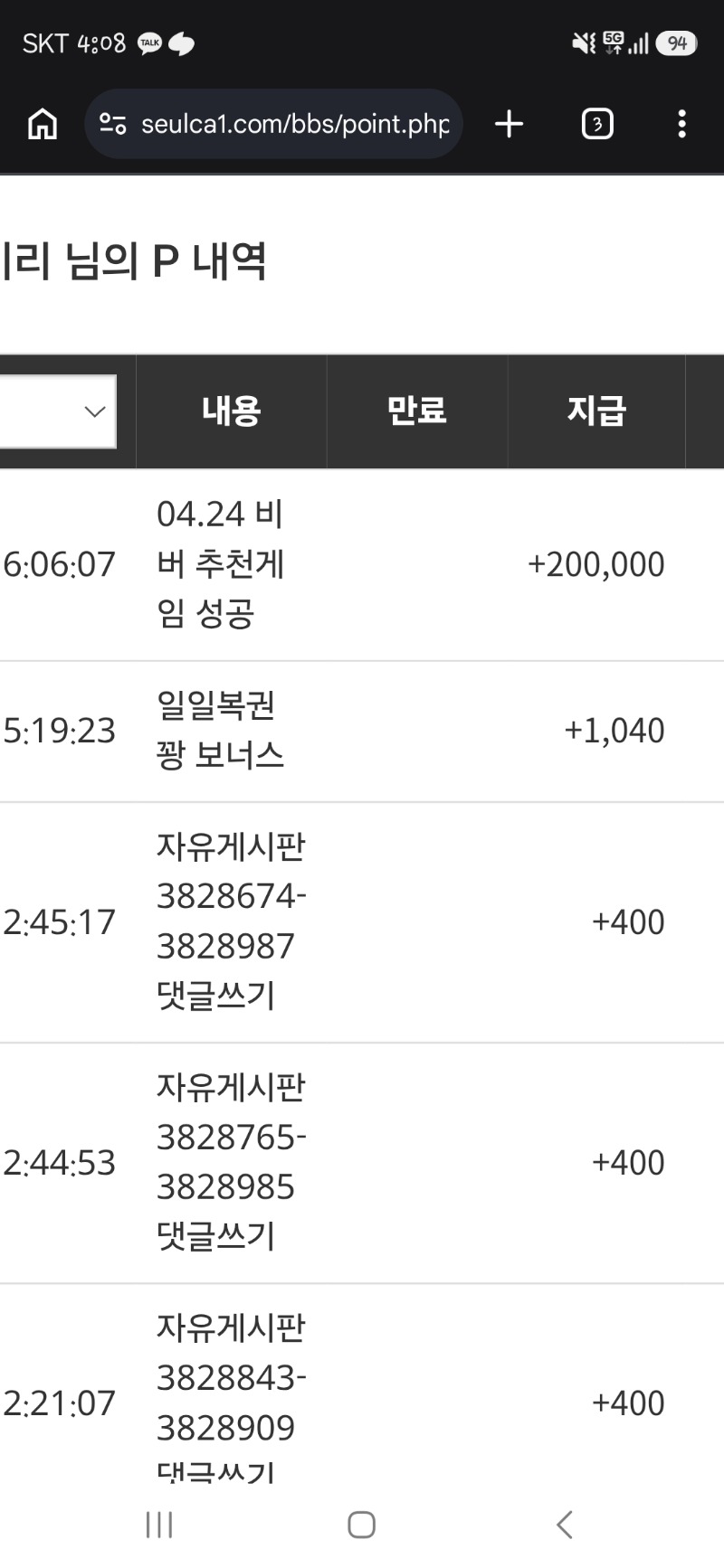 비벼 추겜성공포+ 수익 비쿱 파이리 13 0 0 16:27:37 *기프티콘 바코드 노출 주의* <- 재충하고 터져서 까비지만 그래도 수익 나이스 ㅅ 0 0 https://seulca1.com/bbs/board.php?bo_table=free&wr_id=3829740 Author 3 1 Lv.13 파이리 13 20,653,107 (53%) 파이리님 보유 포인트 : P 9,450 +13 04.24 비벼 추겜성공포+ 수익 비쿱 +4 04.24 2시야 얼렁 와라~~~ 우리 와타도그온다~~ 04.24 점심복권꽝~~ +4 04.24 이모 저왔습니다용~~ +12 04.23 형난 사자승 포인트~