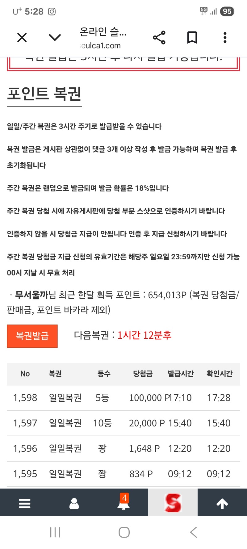 백꽝도전기 0/100 무서울까 1 0 0 17:29:31 *기프티콘 바코드 노출 주의* <- 내꼬 10등 꽝 늘릴려고 구매한고 5등 ㅠ ㅠ 다시 시작해보자 0 0 https://seulca1.com/bbs/board.php?bo_table=free&wr_id=3829996 Author 4 2 Lv.12 무서울까 12 14,426,890 (28%) 무서울까님 보유 포인트 : P 2,718,339 +1 04.24 백꽝도전기 0/100 +6 04.24 사자덕분에 ^^ 호떡이네 쿠폰 왔어요 +7 04.24 백꽝도전기 26/100 +14 04.24 황금모랴의책 110배 +15 04.24 버팔로킹메가 204배