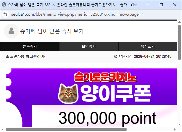 양이님 핀볼 쿠폰 !! 슈가빠 4 0 0 20:30:58 *기프티콘 바코드 노출 주의* <- 0 0 https://seulca1.com/bbs/board.php?bo_table=free&wr_id=3830775 Author 0 0 Lv.10 슈가빠 10 8,594,210 (29%) 슈가빠님 보유 포인트 : P 1,517 +6 04.24 랑이님 추겜당첨 +11 04.24 로얄슈가 2116배 +4 04.24 양이님 핀볼 쿠폰 !! +3 04.24 배당왕은 +15 04.24 폼페이224배