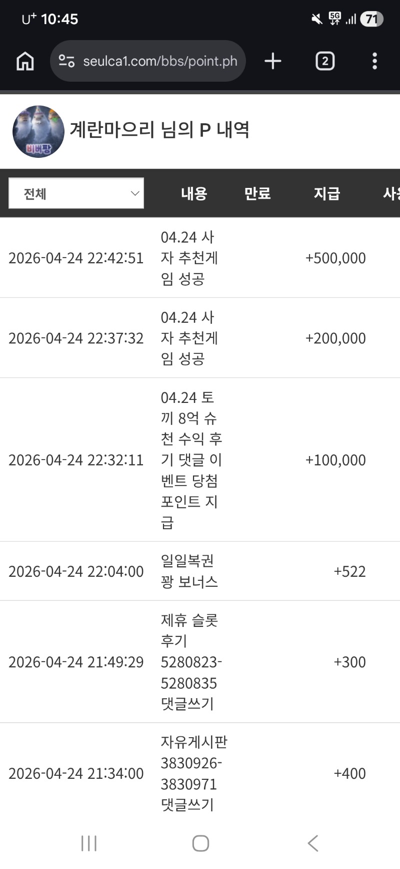 사자추겜 슈우웃~추겜전 새고새고!! 계란마으리 10 1 0 04.24 22:46 *기프티콘 바코드 노출 주의* <- 블던 역시 ㅅ ㅅ ㅅ 수익 나이챠 포인트 나이차! 추겜전 새고 하시고 하셔요!!!!! 미리미리 세고 자주자주 1 0 https://seulca1.com/bbs/board.php?bo_table=free&wr_id=3831221 Author 12 6 Lv.15 계란마으리 15 39,163,000 (45%) 계란마으리님 보유 포인트 : P 27,981,645 +3 04.25 달오빠 추겜 수익 ㅅ ㅅ ㅅ +2 04.25 배팅올리자 마자 다이 +2 04.25 그릇치요오~_~ +10 04.24 사자추겜 슈우웃~추겜전 새고새고!! +4 04.24 양아부지 추겜 수익 ㅅ ㅅ