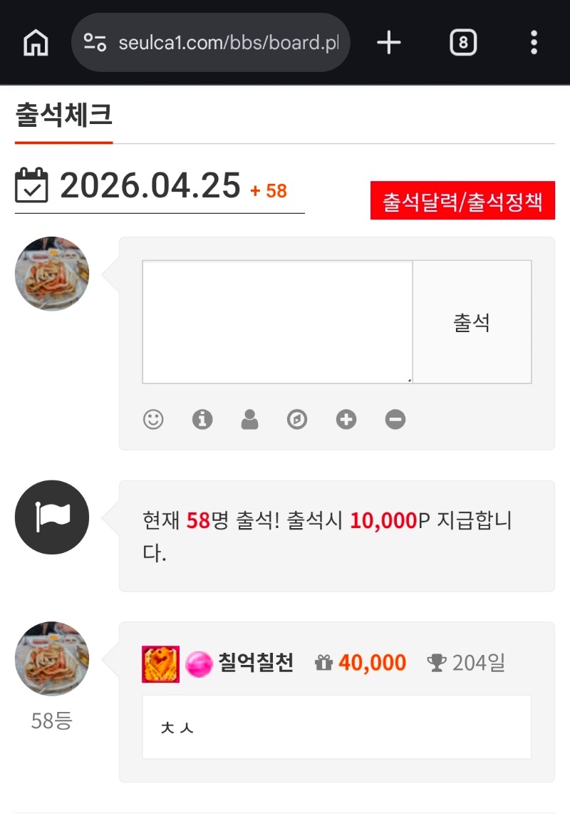 출석이요 칠억칠천 0 0 0 00:02:47 *기프티콘 바코드 노출 주의* <- 4만포 감사합니다 꾸벅 0 0 https://seulca1.com/bbs/board.php?bo_table=free&wr_id=3831420 Author 9 2 Lv.13 칠억칠천 13 20,030,368 (40%) 칠억칠천님 보유 포인트 : P 2,798,055 04.25 달아 난 괜찮아 안삐졌어 ㅋㅋ 04.25 출석이요 +4 04.24 토끼 수익 댓글포 +3 04.24 토끼 추천 수익 슬포 감사합니다 04.24 비버 추겜 슬포