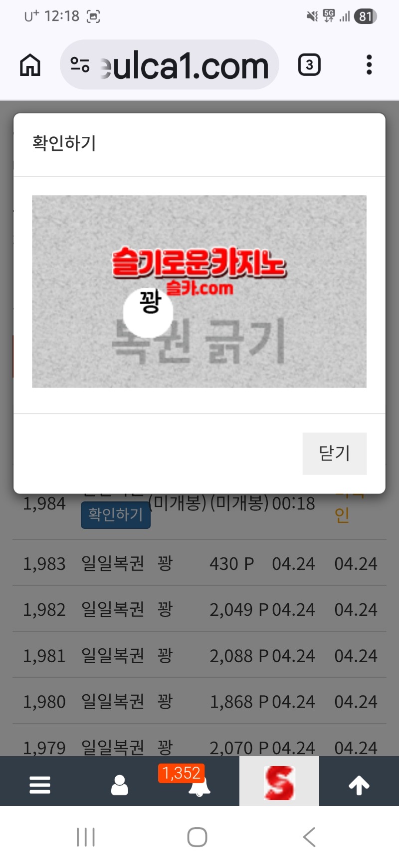 오늘도 첫 번째 일일복권 꽝 오케맨 1 0 0 00:19:41 *기프티콘 바코드 노출 주의* <- 젠장 다음 기회에 0 0 https://seulca1.com/bbs/board.php?bo_table=free&wr_id=3831490 Author 1 2 Lv.17 오케맨 17 74,869,836 (16%) 오케맨님 보유 포인트 : P 2,137,706 04.25 오늘도 출석 +1 04.25 오늘도 첫 번째 일일복권 꽝 +3 04.24 오늘도 수고하셨습니다 04.24 이번주 후기댓글 꼴랑4개 뿐이네요 04.24 불금 그냥 보내고있네요