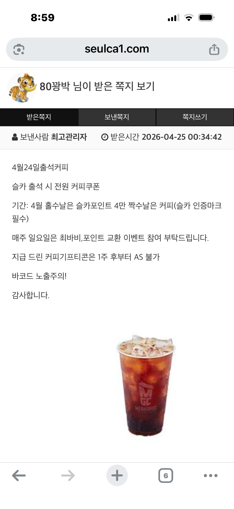 굿모닝~~~커피 감사합니다!!! 80꽝박 1 0 0 09:01:17 *기프티콘 바코드 노출 주의* <- 0 0 https://seulca1.com/bbs/board.php?bo_table=free&wr_id=3832408 Author 6 1 Lv.13 80꽝박 13 21,456,549 (69%) 80꽝박님 보유 포인트 : P 3,493,537 04.25 슈천 1956배 +6 04.25 사무4 2579배 +8 04.25 사무4 3641배 +11 04.25 사무4 5095배 +26 04.25 슈천 5848배