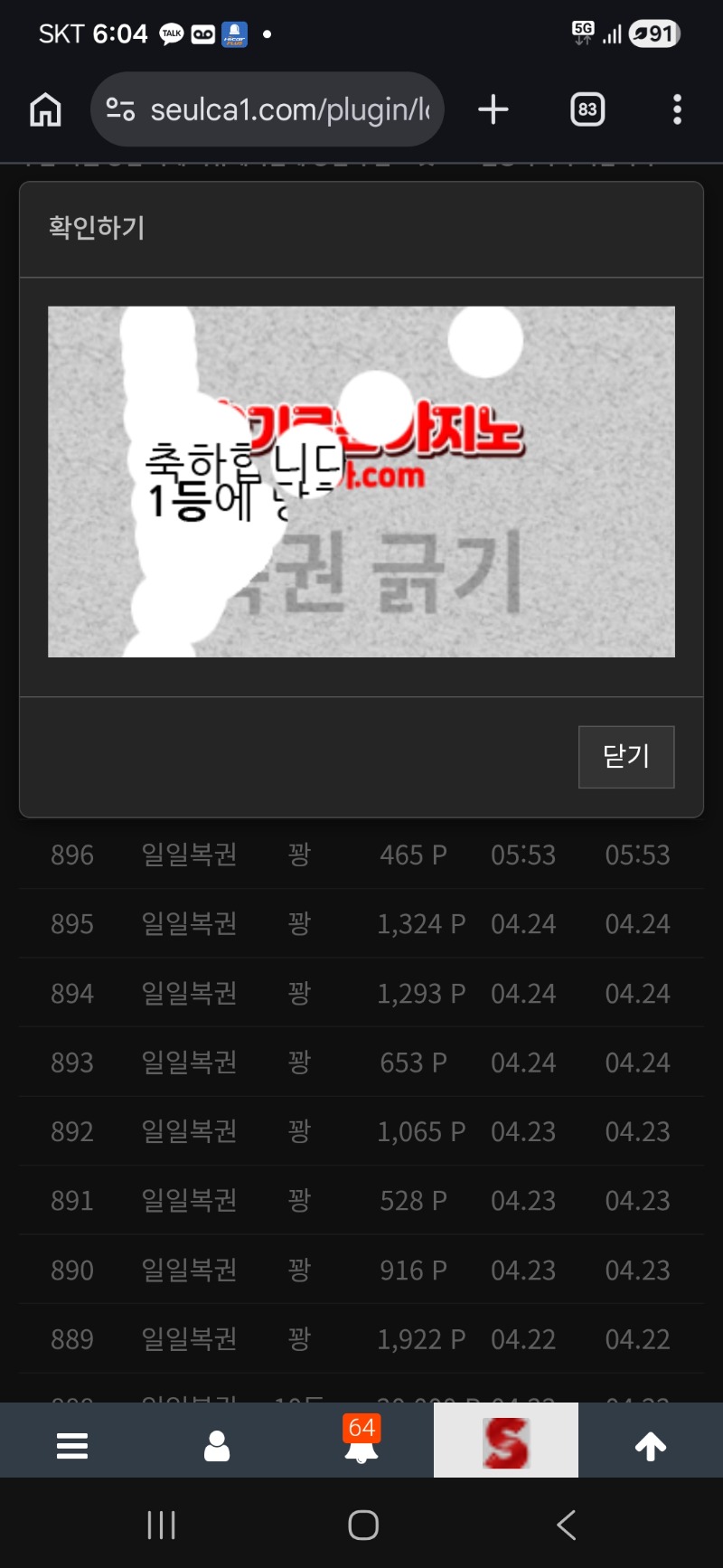 우와 일복1등ㅋ 부산로이 11 0 0 18:05:58 *기프티콘 바코드 노출 주의* <- 이게되네ㅋㅋ 포인트없었는디 0 0 https://seulca1.com/bbs/board.php?bo_table=free&wr_id=3833939 Author 0 0 Lv.9 부산로이 9 7,480,867 (87%) 부산로이님 보유 포인트 : P 644,709 +11 04.25 우와 일복1등ㅋ +3 04.25 오늘하루도 화이팅~ +13 04.24 바카라는1승 +13 04.24 심심해서햇더니 ㅋ 04.24 주말~재밋게들