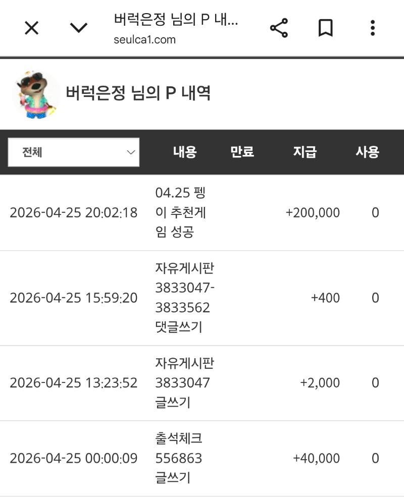 펭그리 추겜 버럭은정 4 1 0 20:29:59 *기프티콘 바코드 노출 주의* <- 1 0 https://seulca1.com/bbs/board.php?bo_table=free&wr_id=3834462 Author 1 0 Lv.9 버럭은정 9 6,815,253 (70%) 버럭은정님 보유 포인트 : P 41,411,999 +4 04.25 펭그리 추겜 +9 04.25 맛점하세요 +7 04.24 사자 추겜당춈 +2 04.24 비버추겜당춈 +1 04.23 펭그리 막추당춈