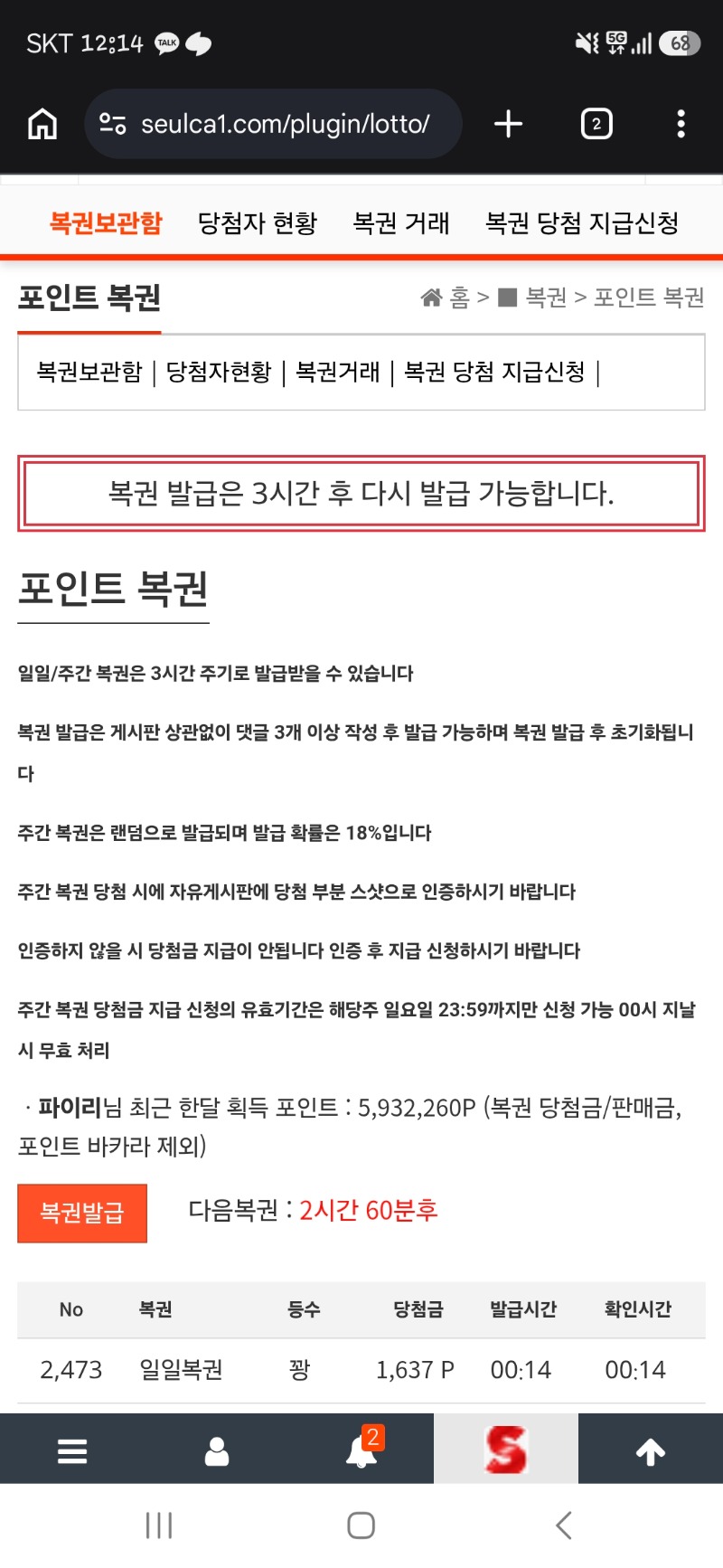 오늘 첫복권은용?? 파이리 1 0 0 00:15:01 *기프티콘 바코드 노출 주의* <- 0 0 https://seulca1.com/bbs/board.php?bo_table=free&wr_id=3834970 Author 3 1 Lv.13 파이리 13 20,747,586 (54%) 파이리님 보유 포인트 : P 22,592 04.26 츨첵하고!! +1 04.26 오늘 첫복권은용?? 04.25 오늘자 복권은 다꽝이네 ㅠ.ㅠ +4 04.25 오후복권은 꽝 ㅠㅠ +4 04.25 오늘 날씨미춌다...와 ㅋㅋㅋ