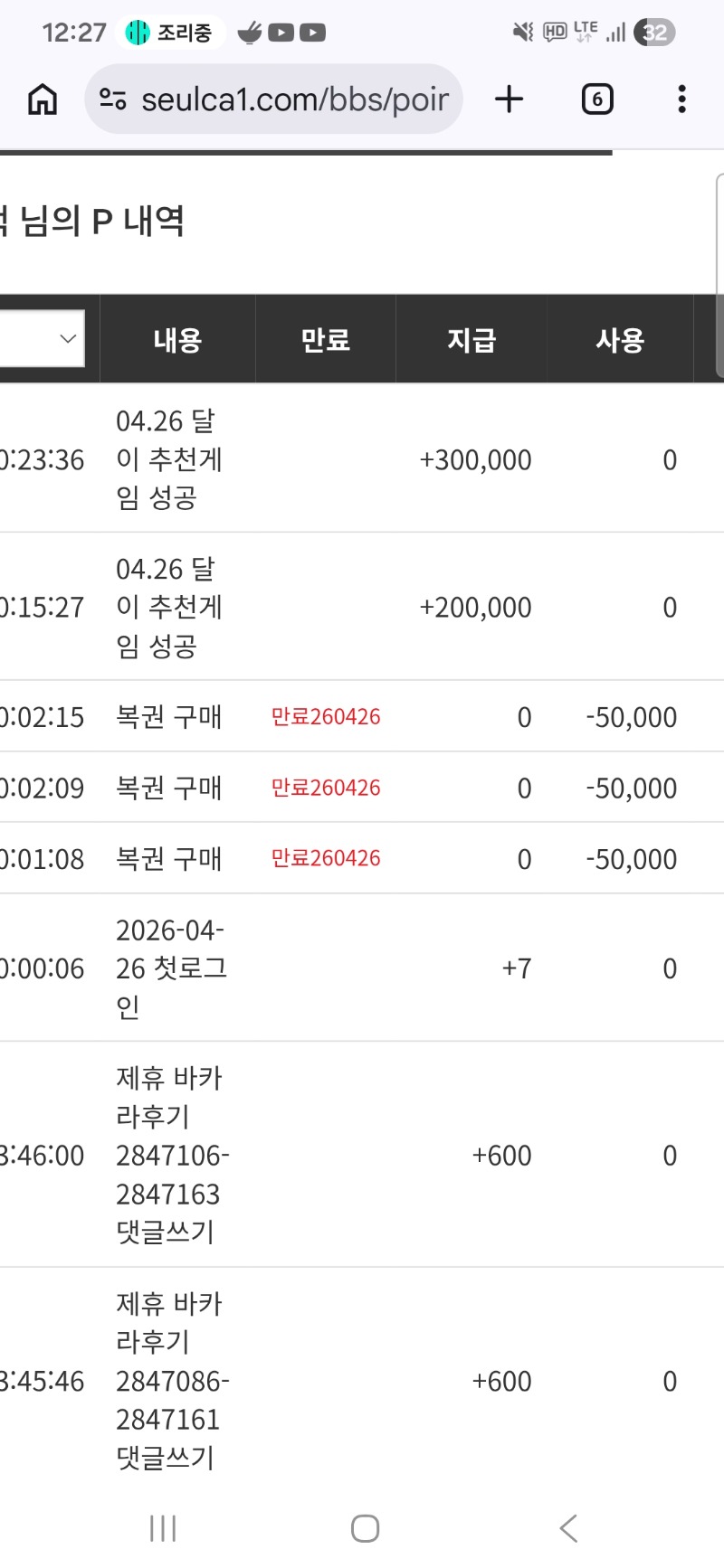 오늘 맛도리 수익마감한 달달이 추겜당첨 몽맥 0 0 0 00:28:29 *기프티콘 바코드 노출 주의* <- 나도 추겜수익보고 후하게 선물 준 달이에게 짝짝짝! 약 13억원 마감 1.5충 11억수익 다시한번 축하행 0 0 https://seulca1.com/bbs/board.php?bo_table=free&wr_id=3835002 Author 51 26 Lv.19 몽맥 19 224,606,584 (0%) 몽맥님 보유 포인트 : P 605,600 +8 04.26 집에 들어와 늦은저녁~?야식 04.26 리필갓짜~깡치기는 손해ㅠ +1 04.26 [비밀글] 교환 04.26 오늘 맛도리 수익마감한 달달이 추겜당첨 04.25 금일 슬카 로또번호는 9번입니다.