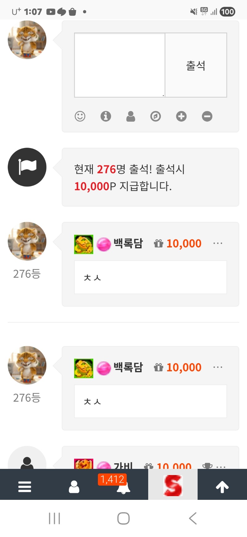 출석합니다 백록담 0 0 0 04.28 01:09 0 0 https://seulca1.com/bbs/board.php?bo_table=free&wr_id=3843110 Author 1 0 Lv.12 백록담 12 14,858,037 (37%) 백록담님 보유 포인트 : P 318,060 +3 04.29 내폰에는 이리 보이는데 추겜당첨은 왜 안되는건지..아리송해~~!!! +5 04.29 깡치라고 주신 선물 감사~^^ 04.28 출석합니다 +59 04.24 고민하다 글을올립니다.이런글을 쓰고 비난을받고 슬카에서 졸업당하고 그럴지는 모르겟지만 슬카생활하는 유저 한사람에 자격으로 한글자 적어봅니다. +3 04.24 비버추겜당첨^^