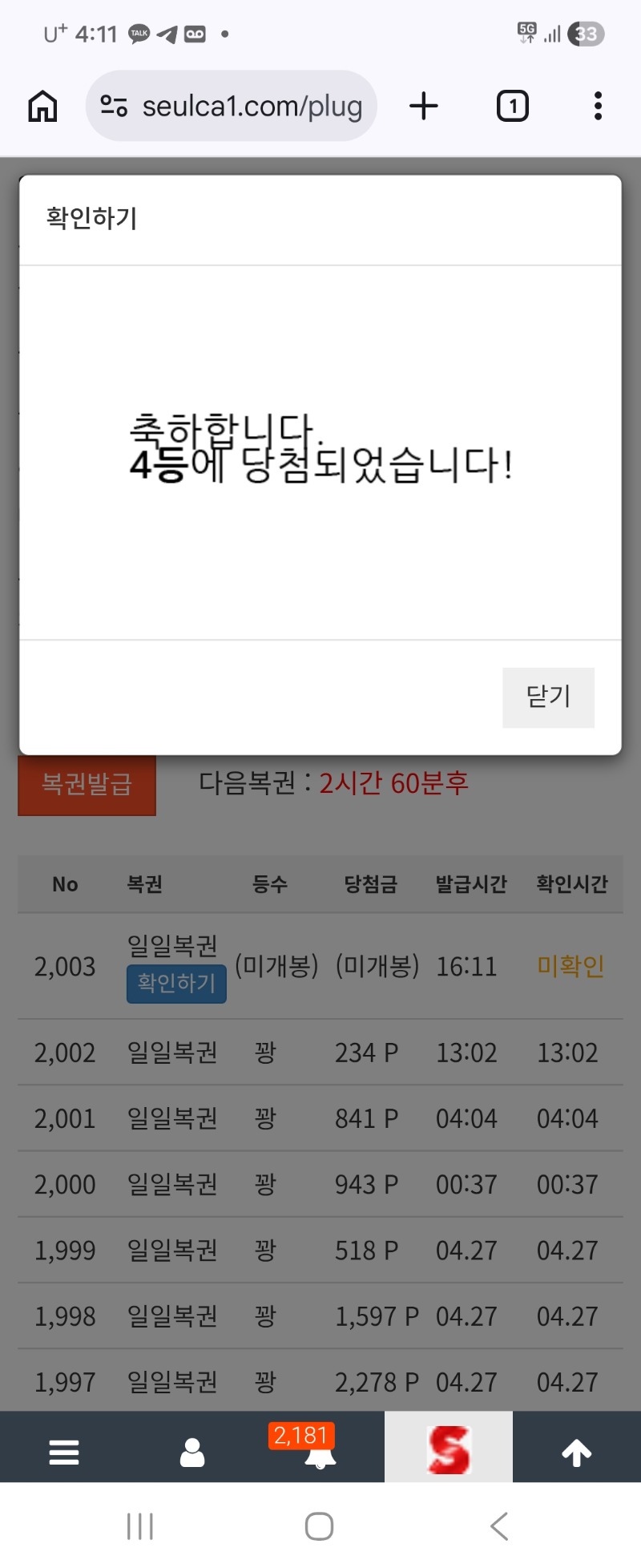 일복 4등 당첨~ ㅅㅅ 청이아빠 20 0 0 04.28 16:12 *기프티콘 바코드 노출 주의* <- 나이스하네요 4등 ㅅ 0 0 https://seulca1.com/bbs/board.php?bo_table=free&wr_id=3844744 Author 1 0 Lv.15 청이아빠 15 42,723,796 (63%) 청이아빠님 보유 포인트 : P 71,209 04.29 맛점하세요~ +2 04.29 주복 10등 당첨 감사합니다 +20 04.28 일복 4등 당첨~ ㅅㅅ +1 04.28 맛점하세요~ +3 04.28 슬카라 역시.. 안되네