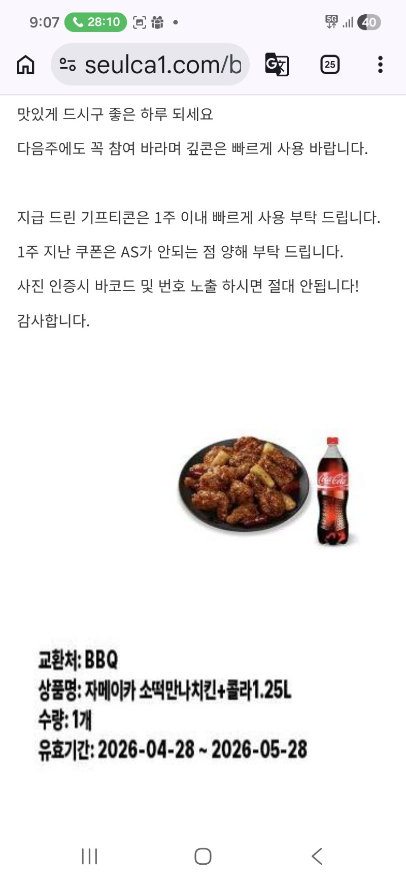 굿모닝입니다 ~^~^ 기적남 1 0 0 09:08:26 *기프티콘 바코드 노출 주의* <- 형난 치킨당첨 이네요~~^~^ 아침에 일어나보니 쿠폰이 ~~ 즐거운 하루들 되시구요 감사합니다 ~^~^ 0 0 https://seulca1.com/bbs/board.php?bo_table=free&wr_id=3847536 Author 2 2 Lv.13 기적남 13 18,931,718 (18%) 기적남님 보유 포인트 : P 11,445,077 +7 04.29 형난 치킨에 ~~ +1 04.29 굿모닝입니다 ~^~^ +4 04.16 좋은 아침입니다~~ +3 04.15 즐밤되시구요 ~~ +8 04.15 쌍복권 으로~^~^