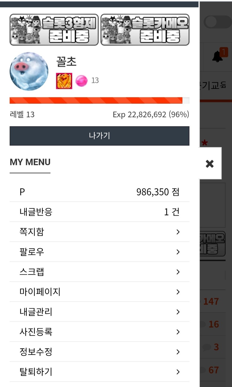 레벨업 해야겠다 오늘 꼴초 6 1 0 09:22:53 여친 알바가고 나면 눈치안보고 댓글활동 열심히해서 오늘 레벨업하겠습니다 키키키키키 1 0 https://seulca1.com/bbs/board.php?bo_table=free&wr_id=3847593 Author 1 0 Lv.13 꼴초 13 22,847,619 (96%) 꼴초님 보유 포인트 : P 1,007,177 +3 04.29 클천 163 +3 04.29 클천 178 +3 04.29 클천 421 +4 04.29 올림푸스문 145 +8 04.29 기자 116
