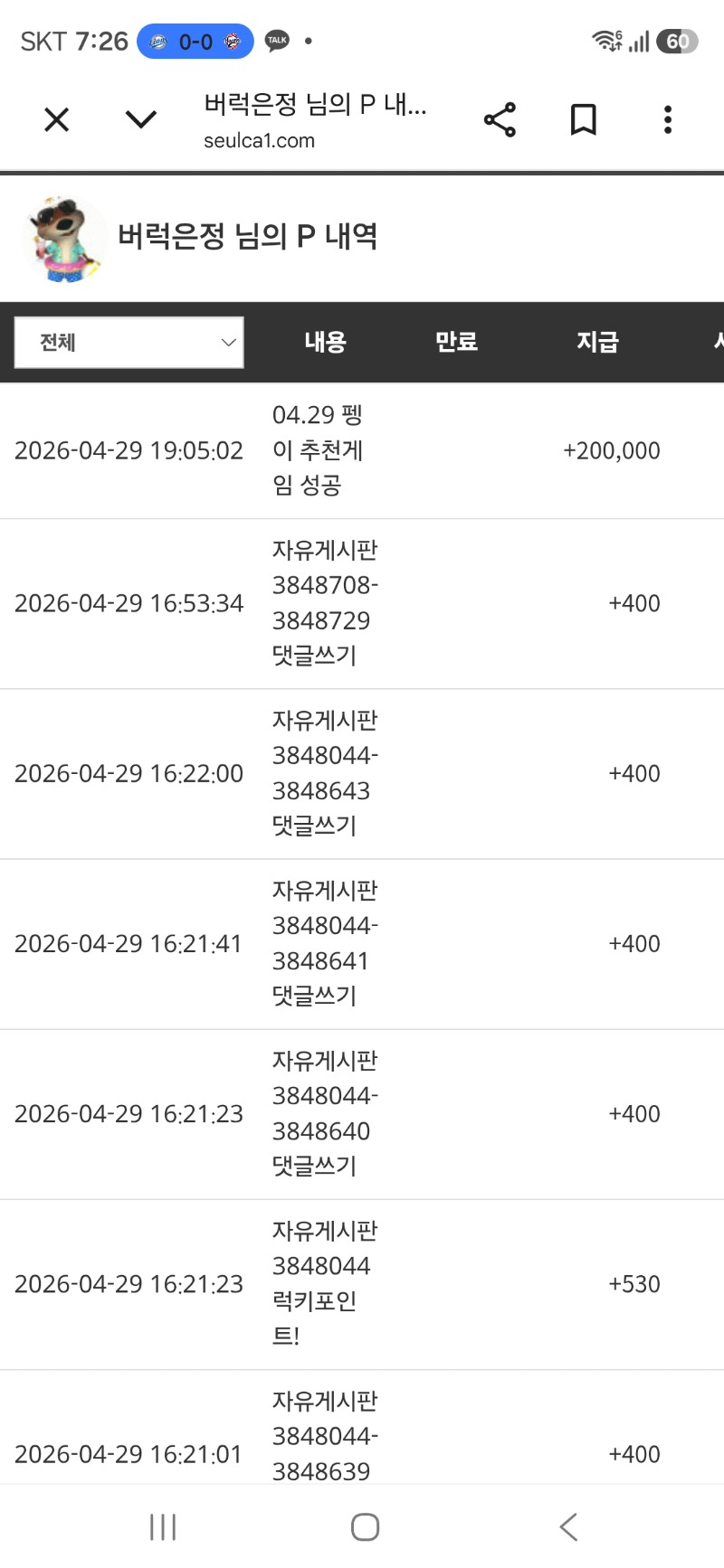 펭그리 추겜당춈 버럭은정 4 0 0 19:27:31 0 0 https://seulca1.com/bbs/board.php?bo_table=free&wr_id=3849275 Author 1 0 Lv.9 버럭은정 9 6,948,881 (73%) 버럭은정님 보유 포인트 : P 41,797,464 +4 04.29 맛저하세요 +4 04.29 펭그리 추겜당춈 +8 04.29 맛점하세요 +6 04.28 양이 추겜 당촘 +6 04.28 오늘의 첫끼자 마지막~~