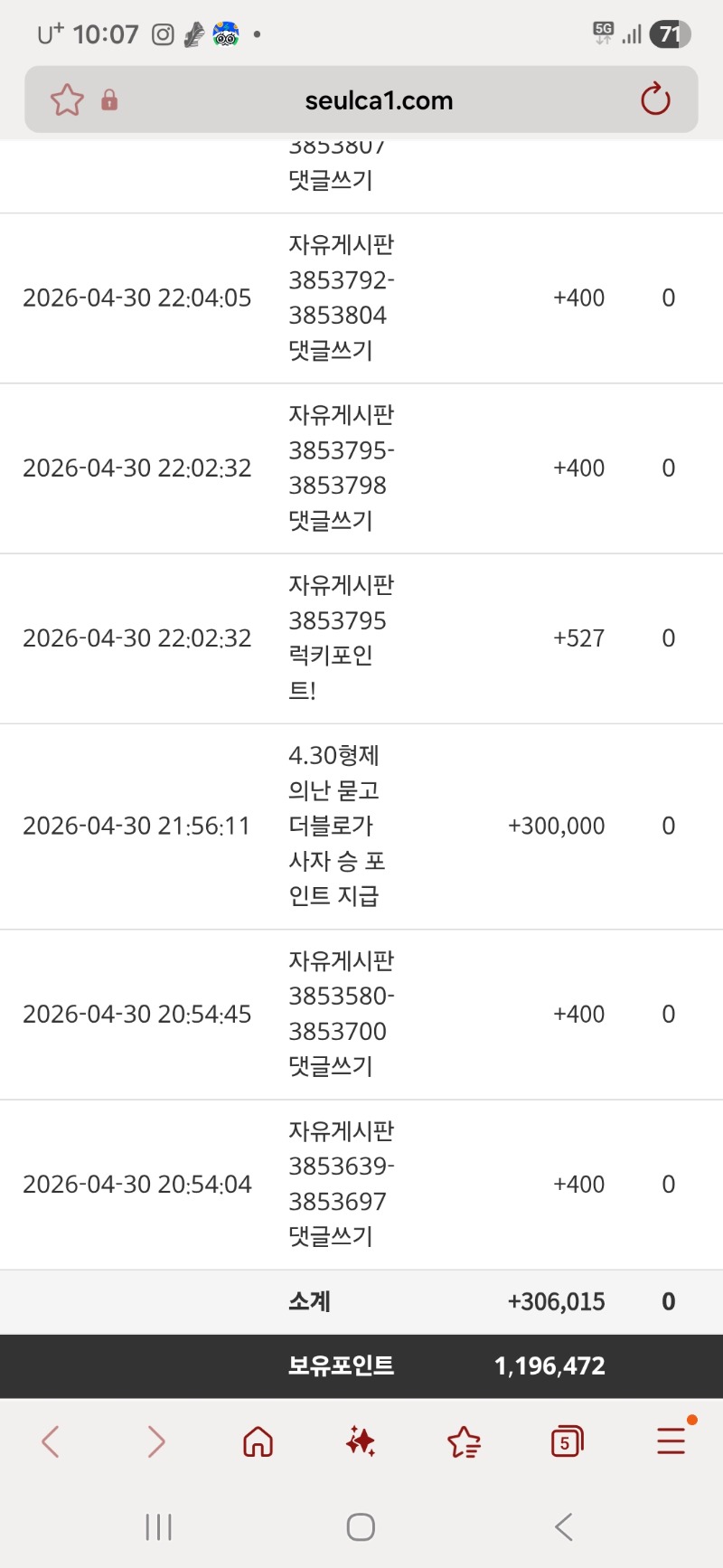 사자띠 고마워 찍어먹자1회 1 0 0 22:07:37 0 0 https://seulca1.com/bbs/board.php?bo_table=free&wr_id=3853820 Author 1 0 Lv.10 찍어먹자1회 10 9,735,897 (86%) 찍어먹자님 보유 포인트 : P 1,205,306 +1 04.30 사자띠 고마워 +1 04.30 퇴근하겠습니다 +59 04.30 슈슈 4238배 +24 04.30 슈슈 4331배 +1 04.30 맛점 하세요