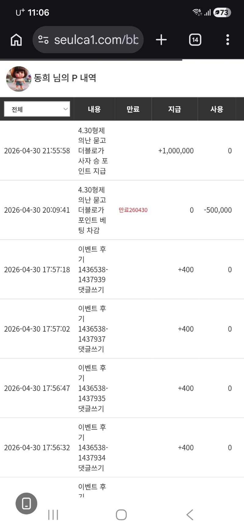형난.사자승.나이스! 동희 1 0 0 04.30 23:06 0 0 https://seulca1.com/bbs/board.php?bo_table=free&wr_id=3853998 Author 4 1 Lv.15 동희 15 46,939,486 (84%) 동희님 보유 포인트 : P 12,628,599 +1 04.30 형난.사자승.나이스! +18 04.30 안타깝게도 정근이네요. ㅠㆍㅠ +2 04.30 모두 맛점들 하세요 +4 04.29 모두 맛점들 하세요 +8 04.29 모두 좋은아침 입니다