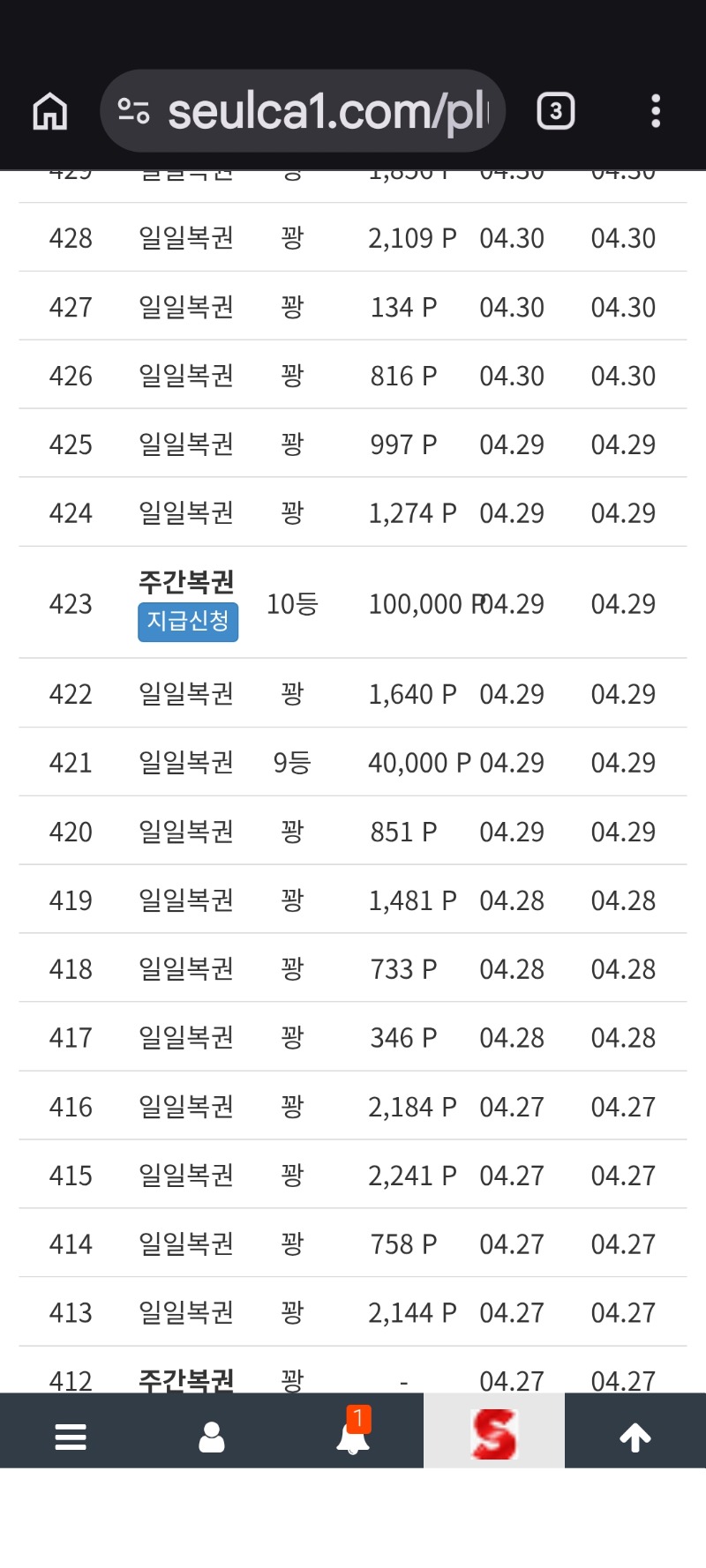 주복 10등 당첨 까치독사 3 0 0 00:19:38 *기프티콘 바코드 노출 주의* <- 1만으로 뭐라지?? 감사해요 0 0 https://seulca1.com/bbs/board.php?bo_table=free&wr_id=3854303 Author 1 1 Lv.9 까치독사 9 4,580,410 (14%) 까치독사님 보유 포인트 : P 142,471 +5 05.01 오라메 189배 05.01 [비밀글] 주복 10등 당첨금 신청요 +3 05.01 주복 10등 당첨 +6 05.01 토라메 214배 +2 04.30 럭포 이벤트 당첨 !!