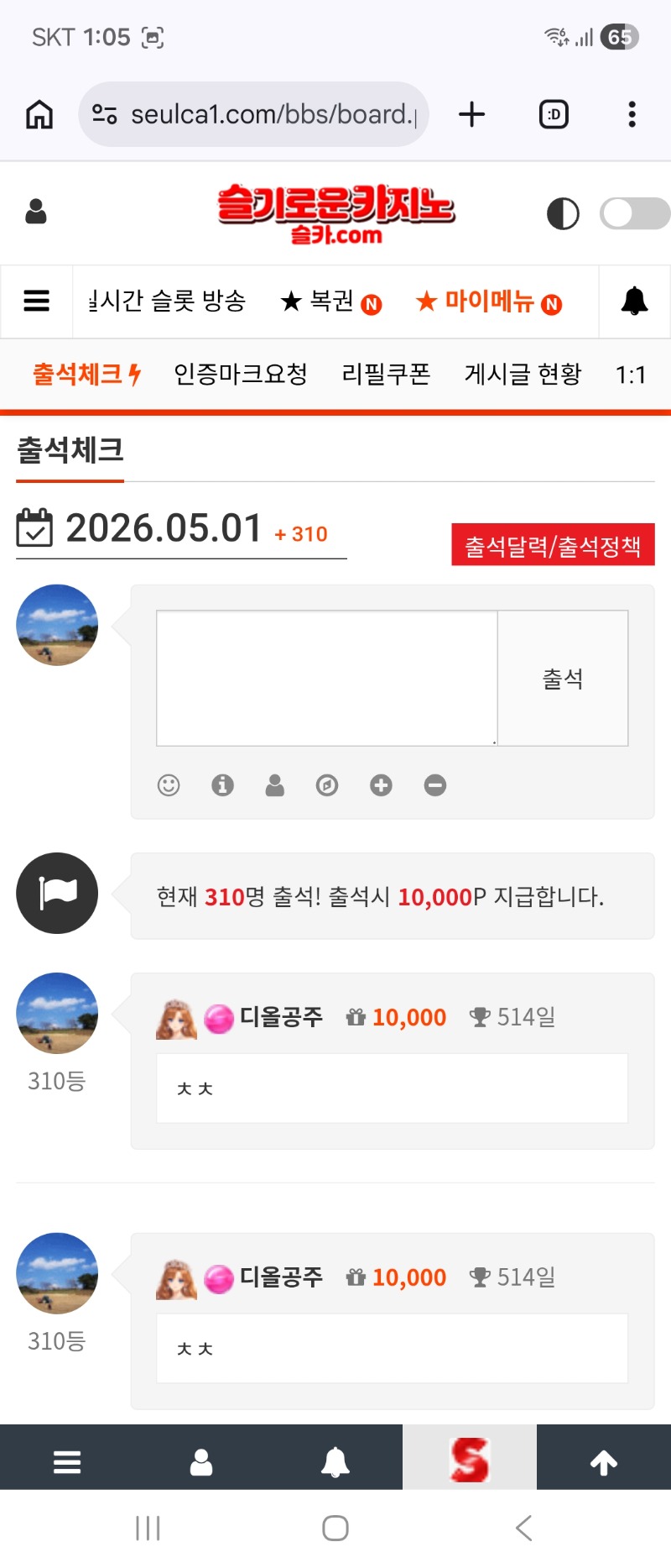 출첵 디올공주 0 0 0 01:06:00 *기프티콘 바코드 노출 주의* <- 0 0 https://seulca1.com/bbs/board.php?bo_table=free&wr_id=3854467 Author 27 16 Lv.19 디올공주 19 229,902,293 (0%) 디올공주님 보유 포인트 : P 3,527,052 05.01 출첵 커피 감사합니다 05.01 출첵 +16 04.30 일복 7등 +6 04.30 피해는 피해대로보고 04.30 맛저하세요 ~