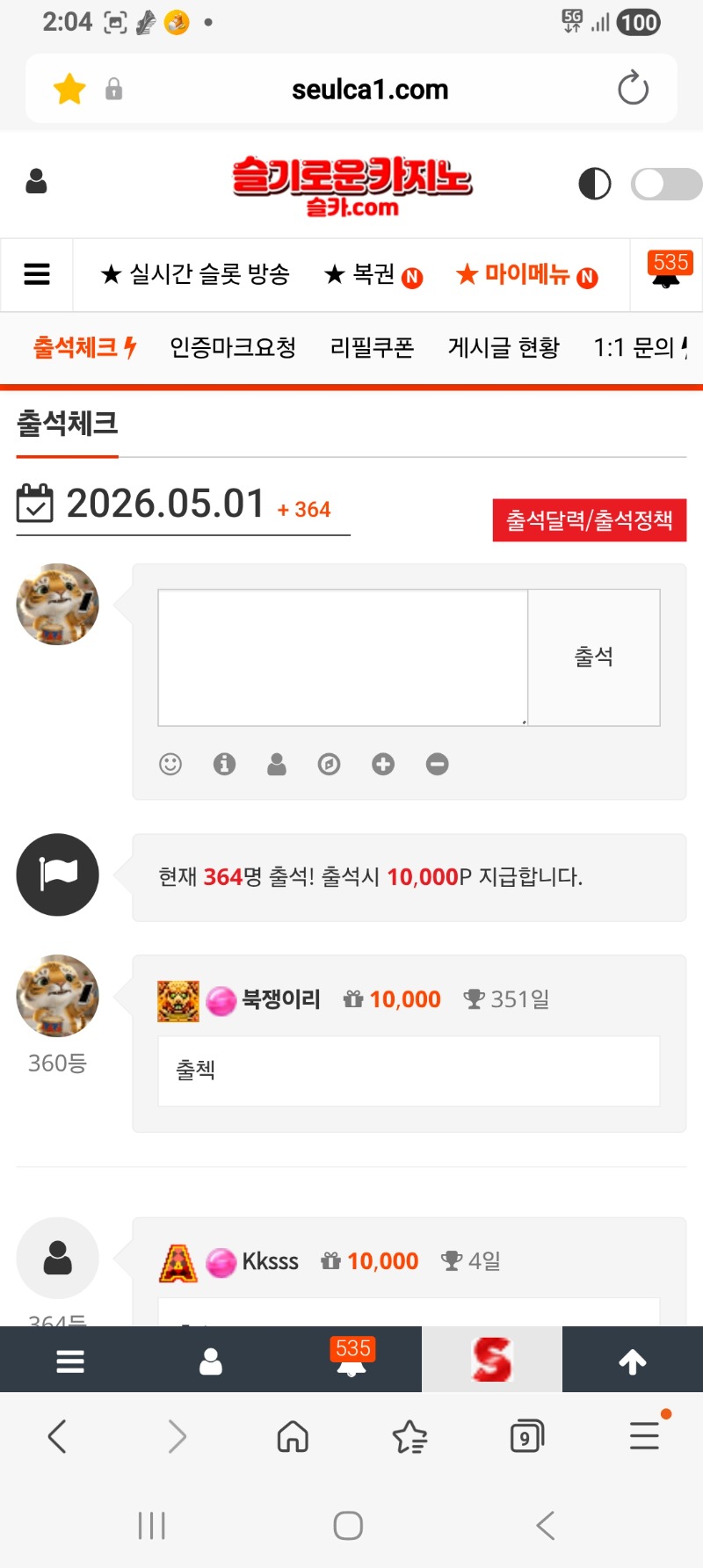 출첵 북쟁이리 1 1 0 02:05:08 *기프티콘 바코드 노출 주의* <- 1 0 https://seulca1.com/bbs/board.php?bo_table=free&wr_id=3854549 Author 4 3 Lv.15 북쟁이리 15 32,185,808 (10%) 북쟁이리님 보유 포인트 : P 810,675 +1 05.01 출첵 05.01 출첵 커피 +1 04.30 사자 형난 승리포 들어왔네요. +1 04.30 이모소환 +2 04.30 퇴근이네요.