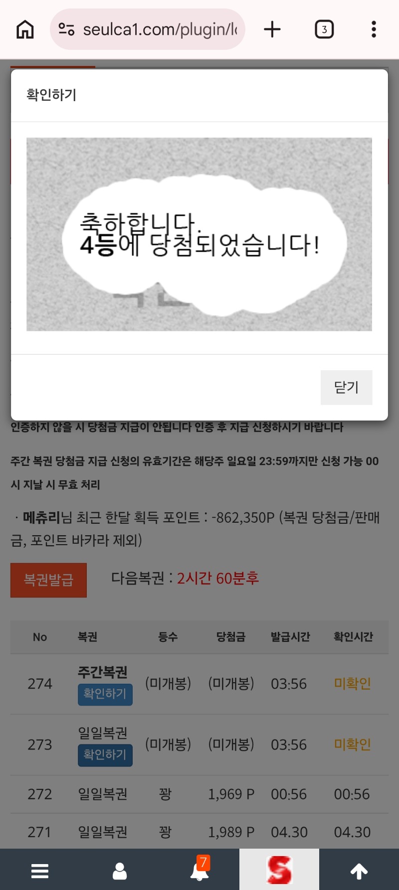 ㅈㅏ기전에 복권 일복 4등 감사함다~~~~♡ 메츄리 3 0 0 03:58:24 0 0 https://seulca1.com/bbs/board.php?bo_table=free&wr_id=3854617 Author 1 0 Lv.9 메츄리 9 4,012,380 (0%) 메츄리님 보유 포인트 : P 439,082 +3 05.01 ㅈㅏ기전에 복권 일복 4등 감사함다~~~~♡ +2 05.01 레벨업^^ 05.01 슬카출석커피ㅅㅅ감사합니당 +1 05.01 [비밀글] 포교신청 +2 04.30 왕중왕전 3등당첨ㅅㅅ 모두고생많았어용 ~~