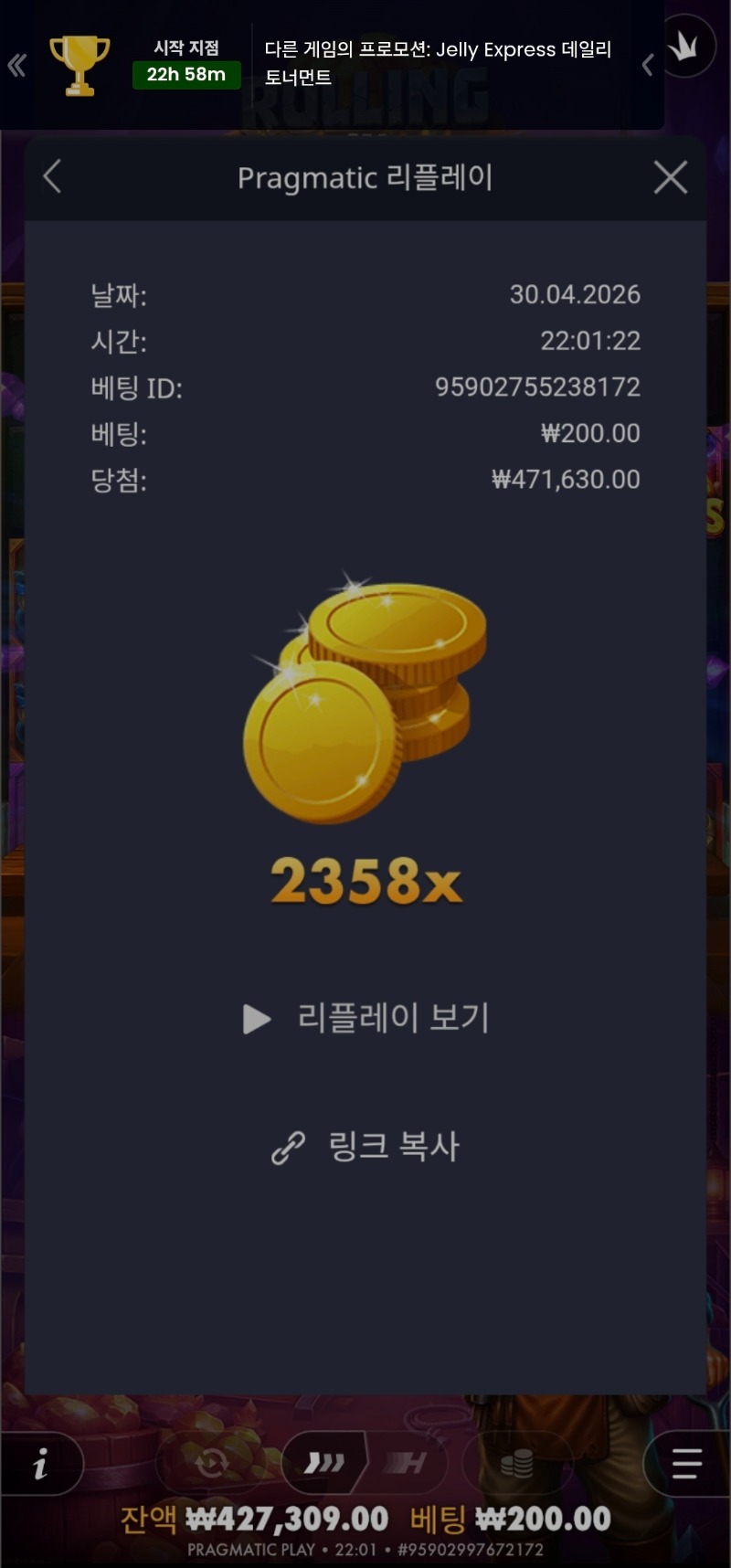 롤링 2358배 쿵펜 시안 2 11 0 0 22:05:37 ※ 변경 내용 - 1일 5회 참여 가능 / 연속 글쓰기 금지 - 놀이터 닉네임 쿵펜 당첨배수(숫자만) 2358 ※ 주의 사항당첨배수 작성 시 꼭!!! 숫자로만 작성. (숫자 외 작성 시 등수 확인 제외 됨) 스크린샷 여기 꼭!!! >> : 0 0 Author 0 0 Lv.12 쿵펜 12 17,944,345 (98%) 쿵펜님 보유 포인트 : P 1,887,889 +2 04.30 롤링 2358배 +15 04.30 롤링 2358배 +7 04.30 롤링 3081배 +45 04.30 롤링 3081배 +25 04.30 롤링 776배